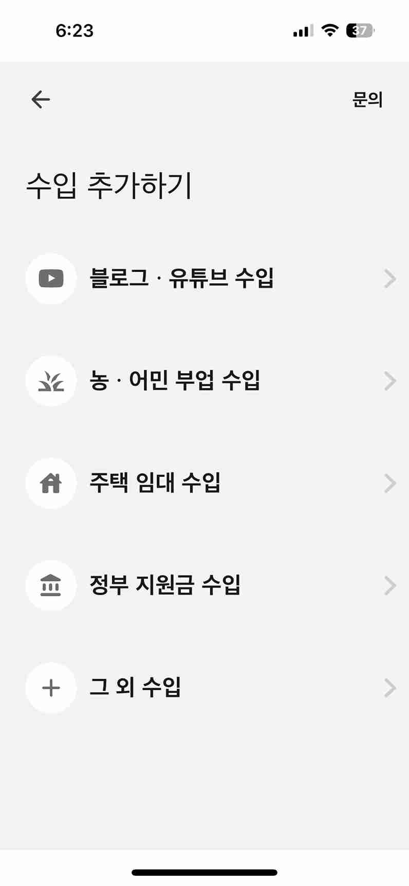 블로그·유튜브 수입, 농·어민 부업 수입, 주택 임대 수입, 정부 지원금 수입, 그 외 수입으로 나뉘며 해당 수입이 있는 경우 추가 등록합니다.